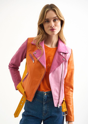 A skoro przy modowych szaleństwach jesteśmy – czasami warto pójść na całość! Połączenie pomarańczowego, żółtego i różnych odcieni różu początkowo może wydawać się przesadą. W praktyce okazuje się jednak, że ich zestawienie może być strzałem w dziesiątkę! Tego typu model kurtki już na pierwszy rzut oka dodaje energii i wprowadza uśmiech na twarz – zarówno osobie, która go nosi, jak i wszystkim, którzy mijają ją na ulicy.
