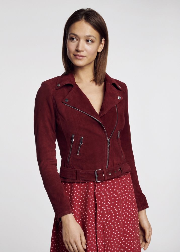Szukasz bardziej stonowanej alternatywy dla szalonej czerwieni? Co powiesz na model w odcieniu bordo, wykonany z delikatnej, naturalnej welurowej skóry koziej? To bardzo kobiece okrycie, które możesz z powodzeniem wykorzystać w romantycznych stylizacjach na randkę, jak i na co dzień. Zestaw bordową zamszową ramoneskę ze zwiewną sukienką w kwiaty i balerinami lub trampkami, a uzyskasz niezwykle dziewczęcy, nieco tajemniczy look!