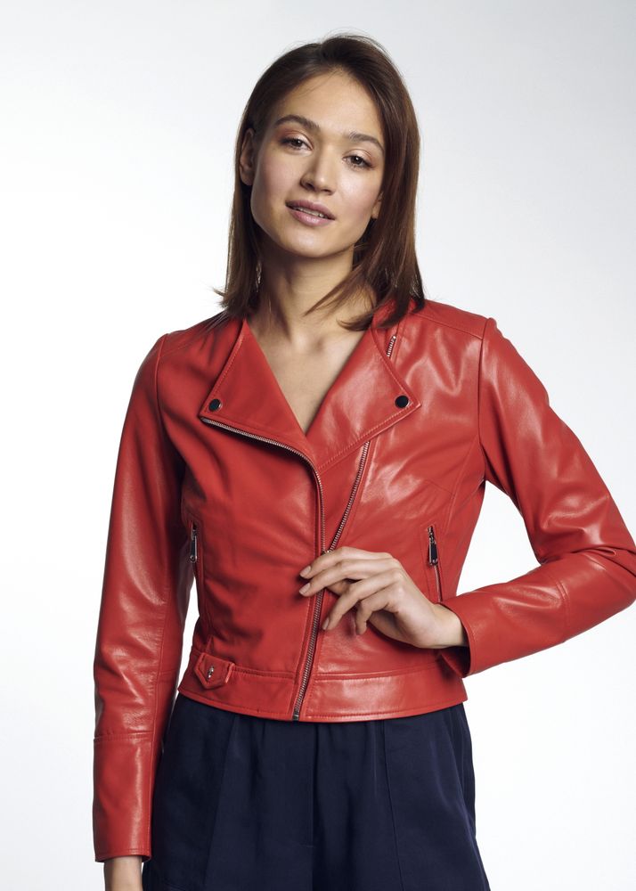 Nie ma chyba bardziej kobiecego koloru niż czerwień. Dlatego jeśli już trochę znudziła Ci się Twoja standardowa czarna kurtka z kołnierzem, zadziałaj zupełnie na przekór i wybierz mocny, konkretny kolor. Ta czerwona ramoneska to doskonała odtrutka na szare i ponure dni oraz sposób na to, abyś wyzwoliła w sobie wulkan energii. Uwaga! Twoja „girl power” może być zaraźliwa!