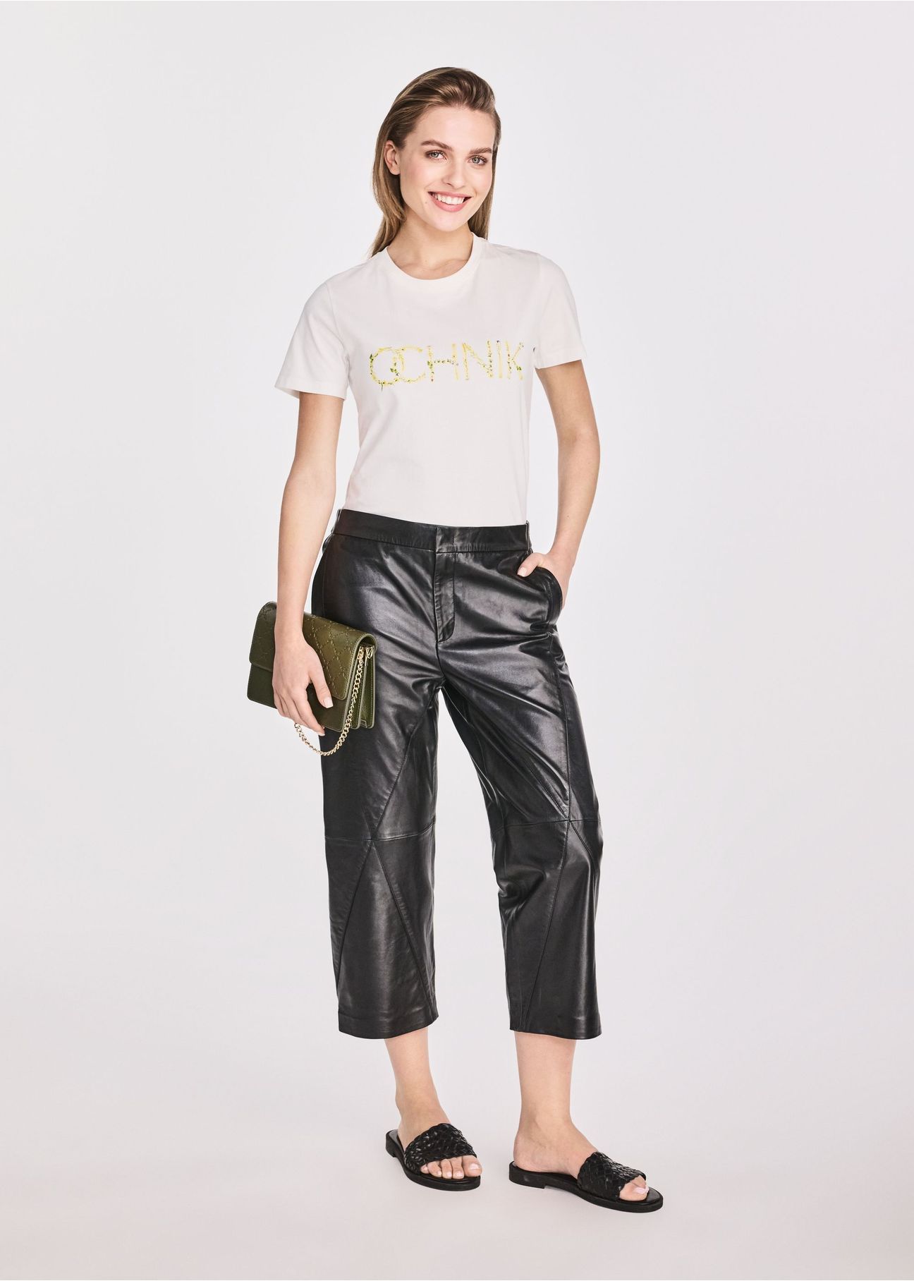 Nie rezygnuj z elegancji nawet w upalne dni. Skórzane spodnie damskie o długości ⅞ to stylowa alternatywa dla klasycznych modeli, idealna na lato. W zestawieniu z plecionymi klapkami i lekką apaszką stworzą nowoczesną stylizację do biura, która łączy komfort z wyczuciem trendów. To doskonały wybór dla kobiet, które szukają eleganckiego looku bez kompromisów między wygodą a stylem.