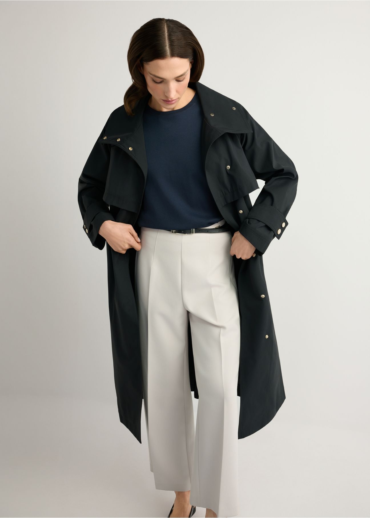To dobra opcja na co dzień, zwłaszcza gdy lubisz ubierać się różnorodnie. Kaptur sprawia, że trencz jest bardziej praktyczny, lepiej chroni przed deszczem. W tym przypadku idealna jest długość do połowy uda.