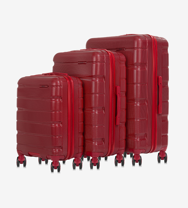 • elegancki design – twarde tworzywo daje projektantom znacznie szersze pole do popisu w obszarze wzornictwa niż miękkie materiały. Dlatego bez trudu znajdziesz np. komplety bagażu w intensywnych kolorach, a także zdobione charakterystycznymi deseniami. Osoby, które zwracają uwagę na wygląd walizek, doceniają także delikatnie połyskujące wykończenie powierzchni;