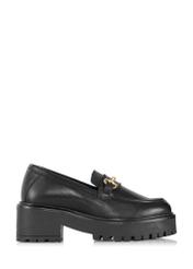 Loafersy damskie na platformie. Wykonane z wysokogatunkowej lakierowanej bydlęcej skóry naturalnej. Zdobione złotą klamrą.