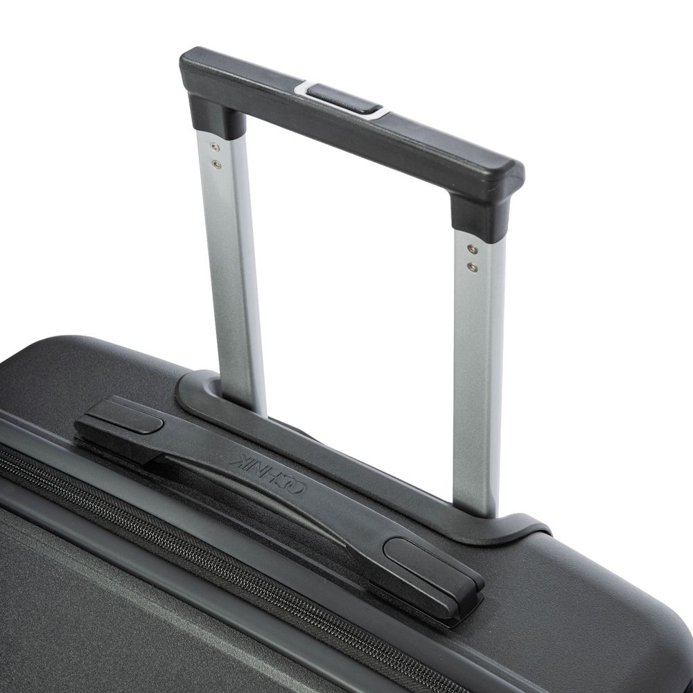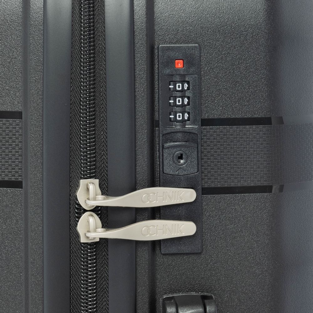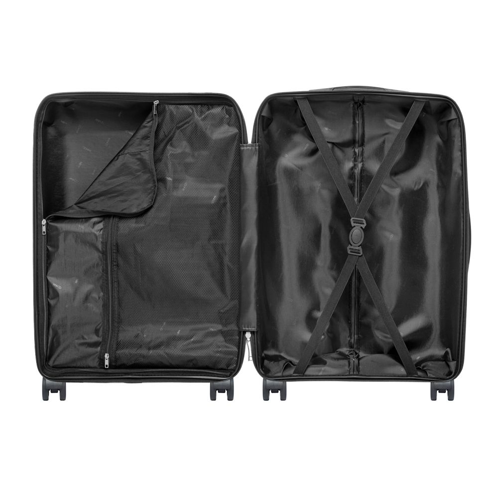 Duża walizka wykonana z elastycznego i odpornego na zarysowania materiału PP (polipropylenu). Walizka wyposażona w podwójne kółka o zakresie obrotu 360°. Dzięki dwóm gumowym rączkom oraz wysuwanemu uchwytowi możliwe jest jej wygodne transportowanie. Wewnątrz walizka podzielona na dwie komory. Jedna z części zamykana materiałem na suwak, posiada praktyczną kieszonkę z siatką, druga część z elastycznymi pasami zabezpieczającymi bagaż przed przemieszczeniem. Walizka wyposażona jest w zamek numeryczny.