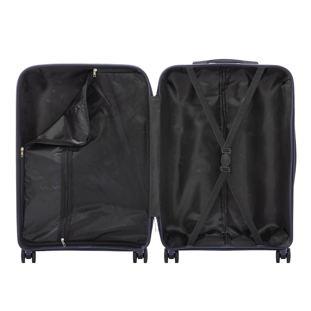 Mała walizka wykonana z elastycznego i odpornego na zarysowania materiału PP (polipropylenu). Walizka wyposażona w podwójne kółka o zakresie obrotu 360°. Dzięki gumowej rączce oraz wysuwanemu uchwytowi możliwe jest jej wygodne transportowanie. Wewnątrz walizka podzielona na dwie komory. Jedna z części zamykana materiałem na suwak, posiada praktyczną kieszonkę z siatką, druga część z elastycznymi pasami zabezpieczającymi bagaż przed przemieszczeniem. Walizka wyposażona w zamek numeryczny.