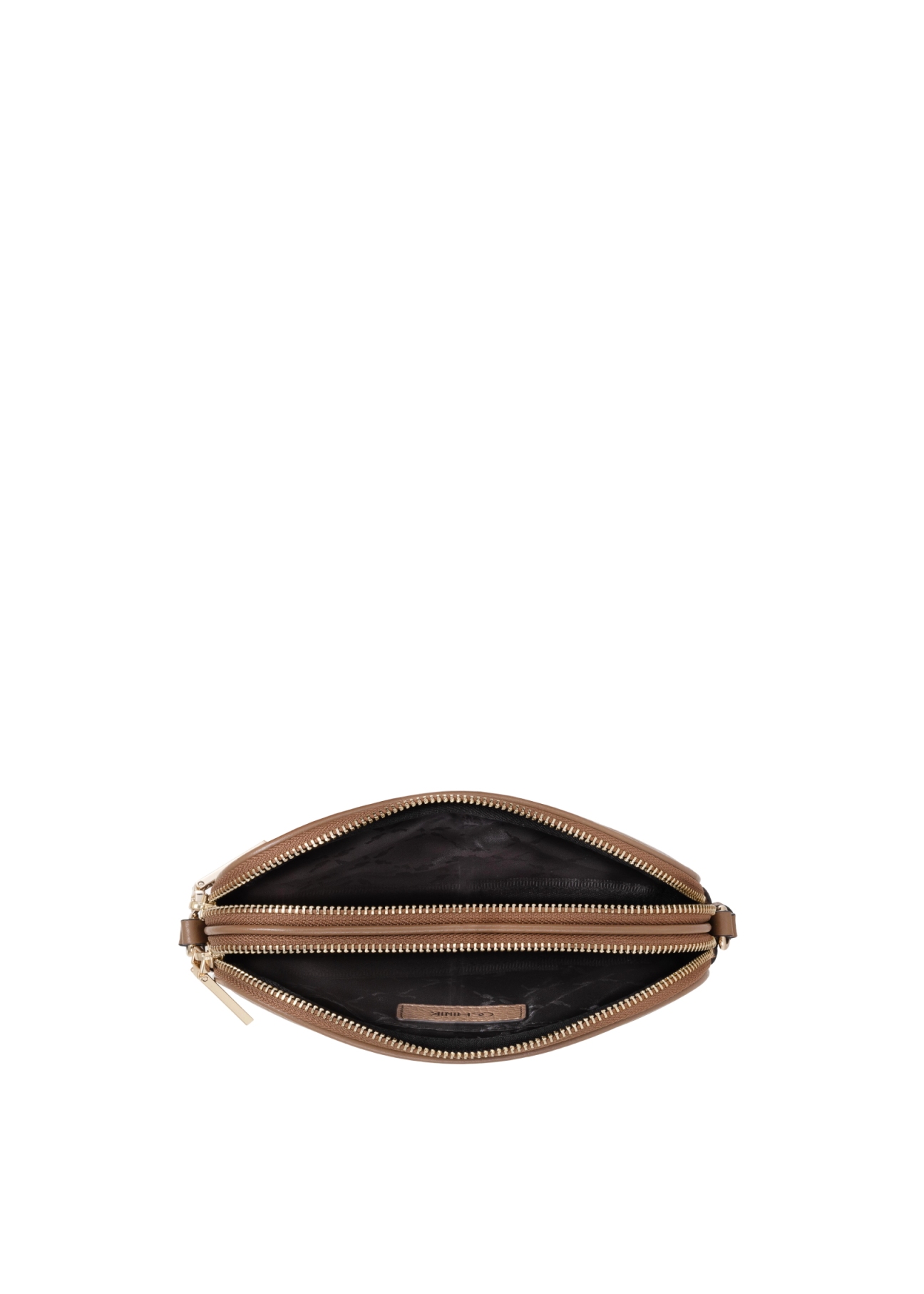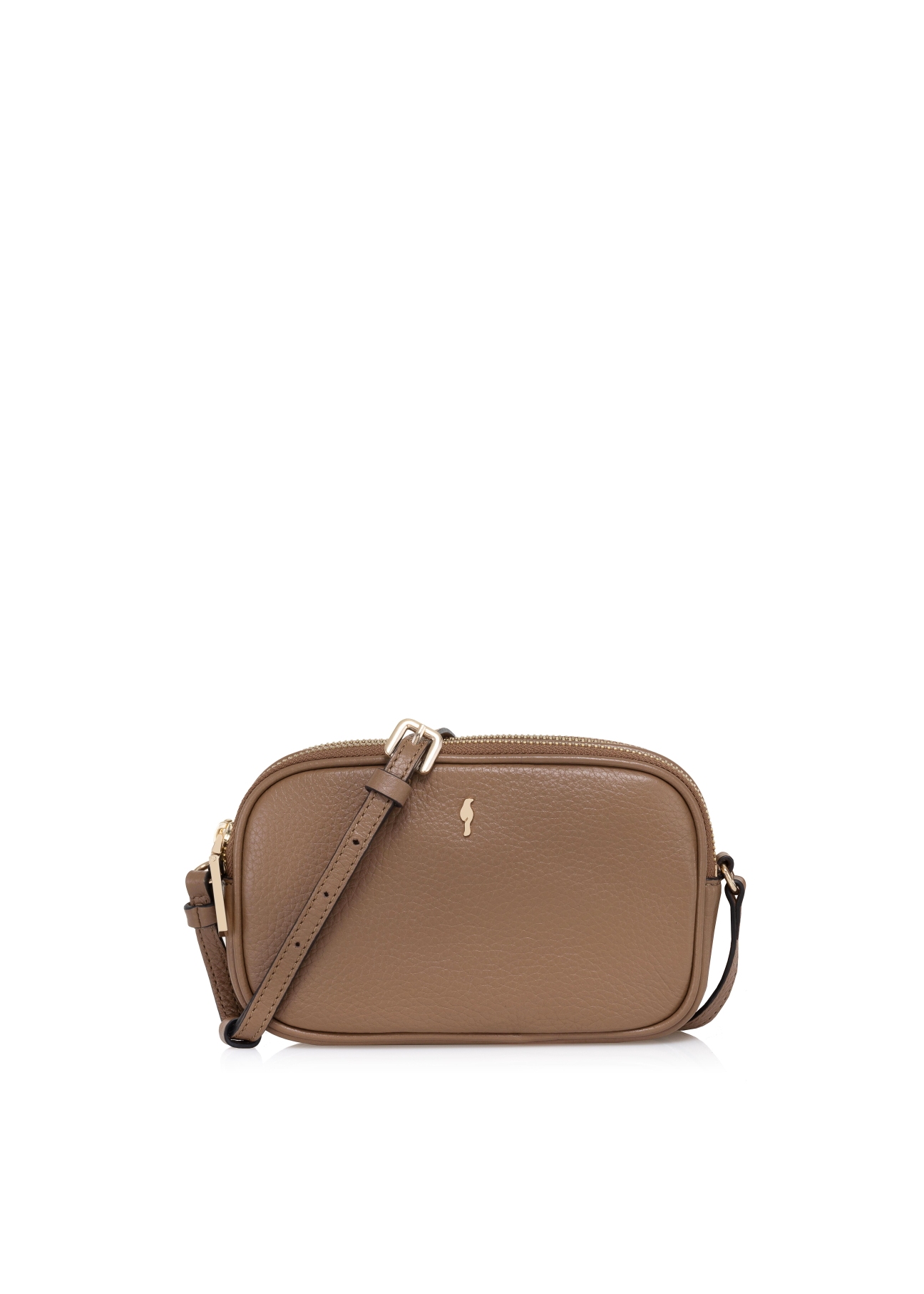 Mała torebka damska w brązowym kolorze. Wykonana z naturalnej skóry bydlęcej włoskiej o groszkowej fakturze. Posiada pasek do noszenia na ramieniu lub cross body.