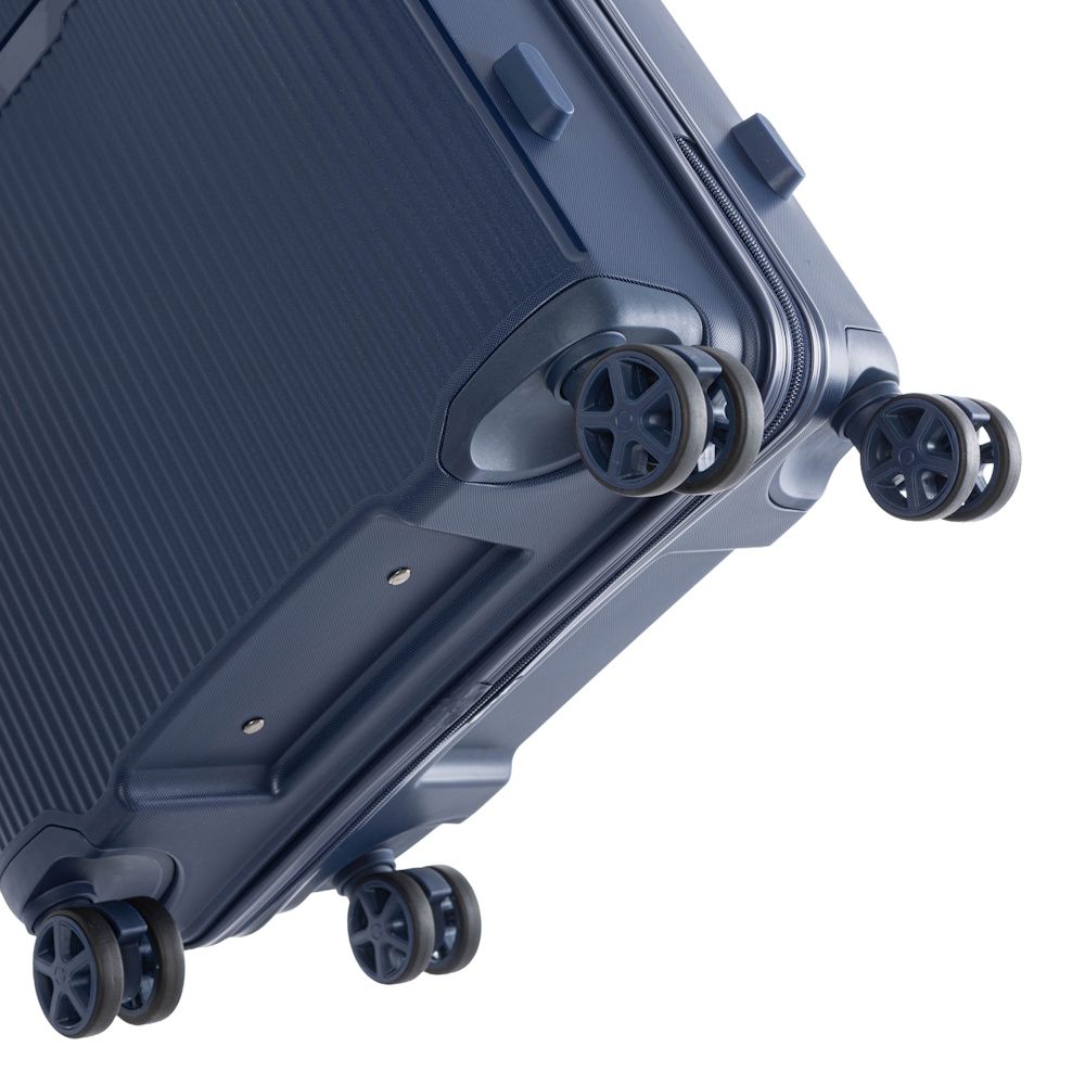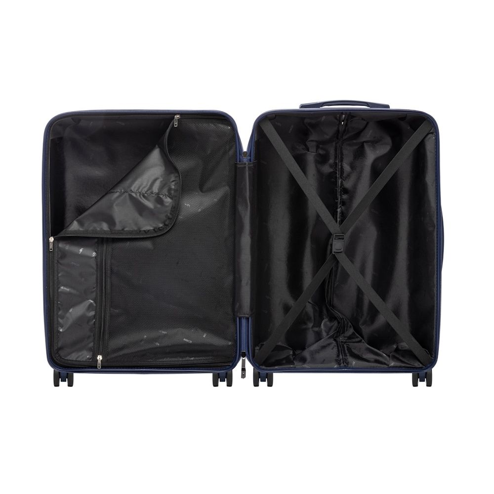 Duża walizka wykonana z elastycznego i odpornego na zarysowania materiału PP (polipropylenu). Model posiada zamek szyfrowy TSA. Walizka wyposażona w podwójne kółka o zakresie obrotu 360°. Dzięki dwóm gumowym rączkom oraz wysuwanemu uchwytowi możliwe jest jej wygodne transportowanie. Wewnątrz walizka podzielona na dwie komory. Jedna z części zamykana materiałem na suwak, posiada praktyczną kieszonkę z siatką, druga część z elastycznymi pasami zabezpieczającymi bagaż przed przemieszczeniem.