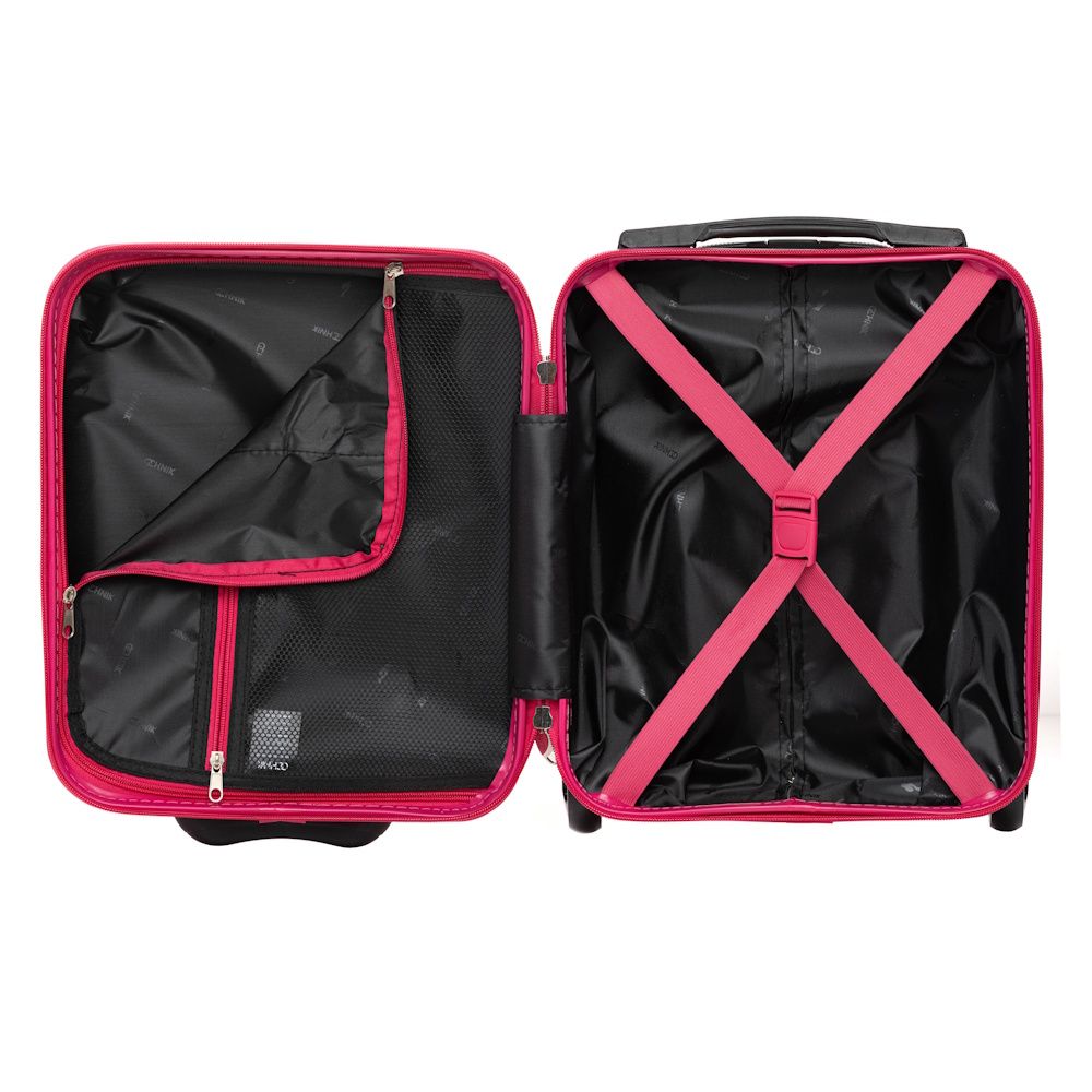 Mała walizka, tzw. kabinówka, wykonana z bardzo lekkiego, wytrzymałego i odpornego na uszkodzenia materiału ABS. Kółka pojedyncze, wykonane z mieszanki kauczuku i gumy, łożyskowane. Wewnątrz komora podzielona na dwie części, w jednej przestrzeń zamykana materiałem na suwak, w drugiej – elastycznymi pasami zabezpieczającymi. Świetnie sprawdzi się jako bagaż podręczny do linii lotniczych: Ryanair, Air France, American Airlines, LOT, Norwegian, Wizzair, Easy Jet, Qatar Airways, Emirates, Lufthansa.
