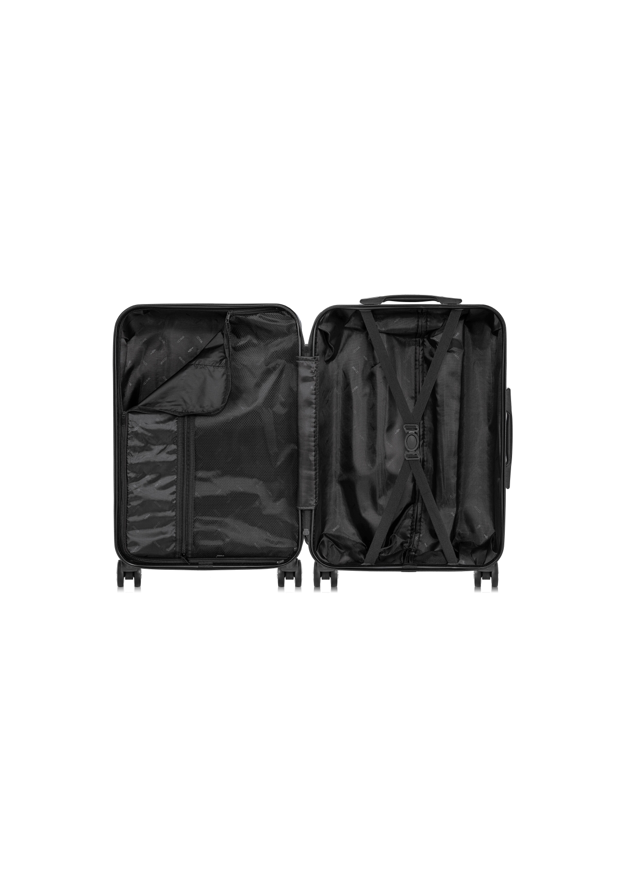Średnia, twarda walizka o opływowym kształcie w kolorze niebieskim. Wykonana z bardzo lekkiego, wytrzymałego i odpornego na uszkodzenia materiału ABS. Kółka podwójne, wykonane z mieszanki kauczuku i gumy, łożyskowane, obrót 360 stopni. Wewnątrz komora podzielona na dwie części, w jednej przestrzeń zamykana materiałem na suwak, w drugiej – elastycznymi pasami zabezpieczającymi.